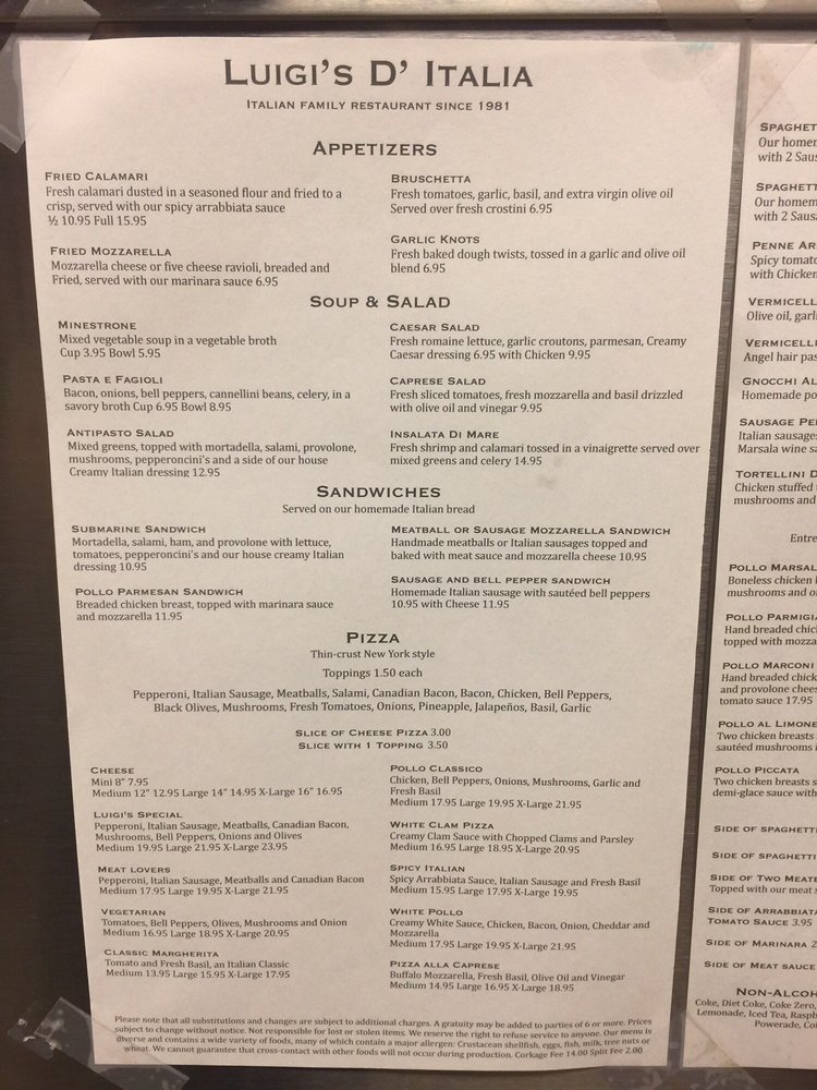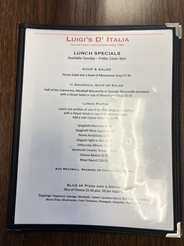 Luigi's D' Italia Menu